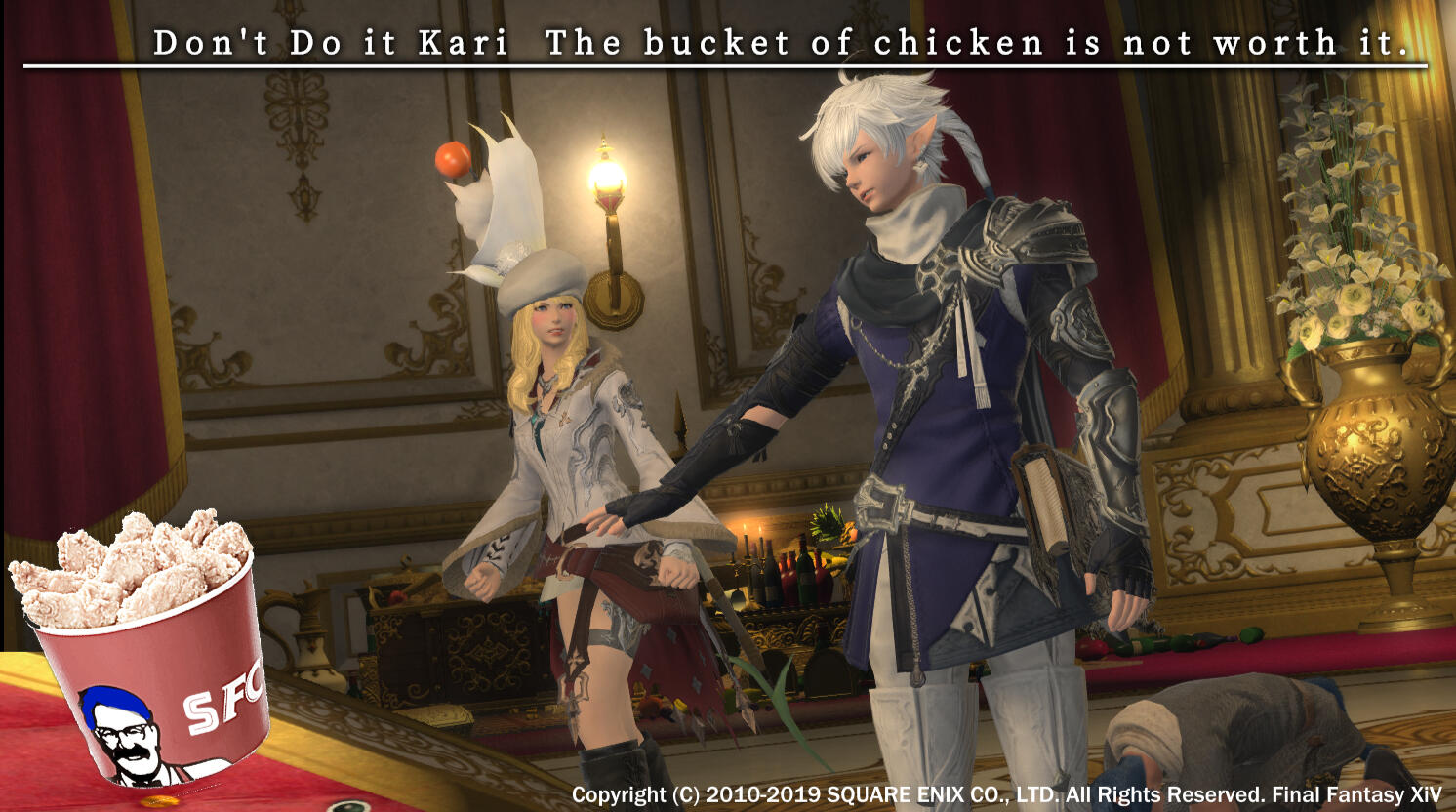 ......After a long drawn out battle along with chaos, The Tavern has become safe. It has been moved to a new location in the Goblet in Ul'dah not far from the Azure Flames Cafe. This has been making it easier for Kari to visit and see others like Rhaia, Catori, Tee'la, Lizzy and so on.The Issue with this is Kari does not obey or care about her well being nor that her job is illegal. She straight up uses her materia often and has begun to show signs of the materia poisoning her system from her skin to now her left eye changing to a perminant Green color. Naz has been more on her case since and they have come into possession of a house in the Lavender Beds for themselves which is also a diner along with their place in the Dark and Light Tavern.Kari has begun to show signs of not remembering where she is and is acting more absent minded every day. This also lead to chaos as the tavern had issues and actually wound up becoming a battlefield. It blew up in the chaos but the employees were able to contain the situation and move safely to Ul'dah to a newer bigger lot where they now work.